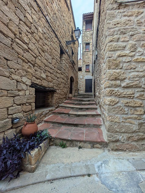 L’Espluga de Francoli: This is more a town than a village, by which I mean you have lots of options for shopping and restaurants (compared to my village with two). It is home to my favorite bakery (Cots Artesans), weekly farmers market (on Fridays in the plaza by the cathedral), and Sunday-only pollo y conejo a l’ast (rotisserie chicken and rabbit) to die for at Polleria Antónia.